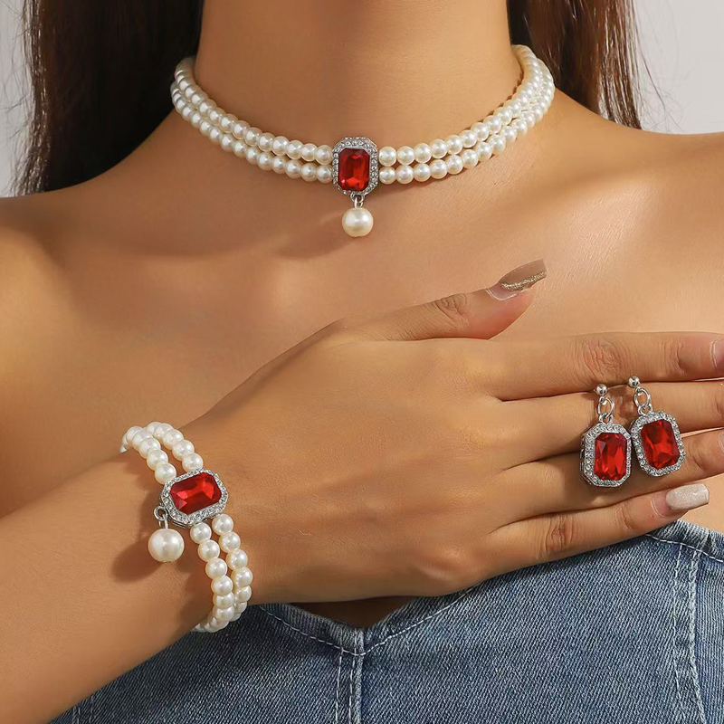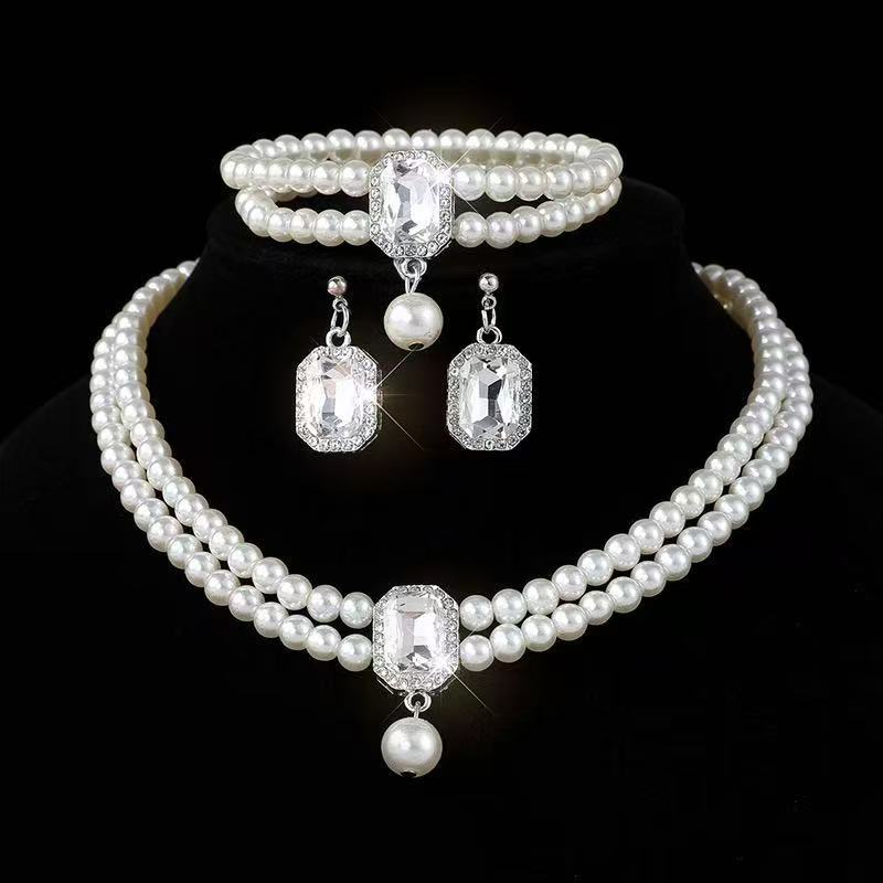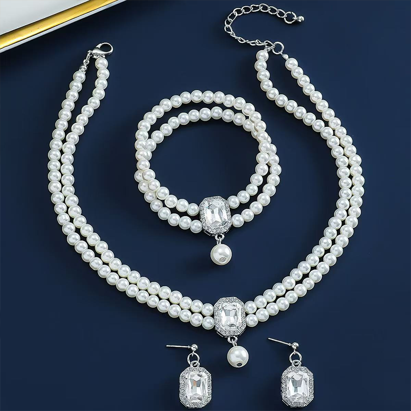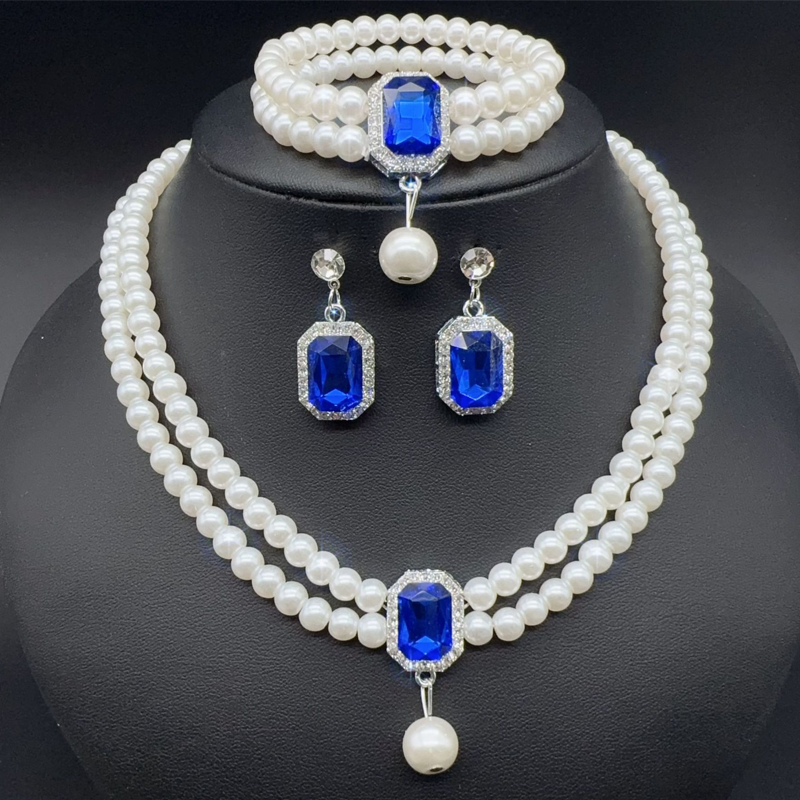 Le paquet comprend : 1 * 4 pièces de bijoux de luxe, ensemble de fausses perles à double couche.