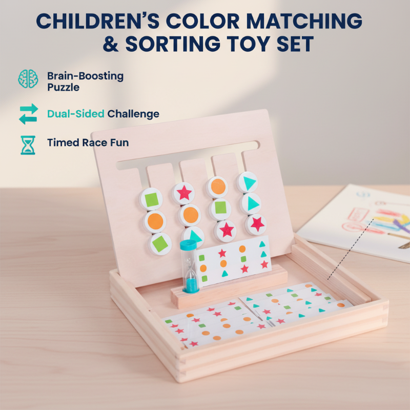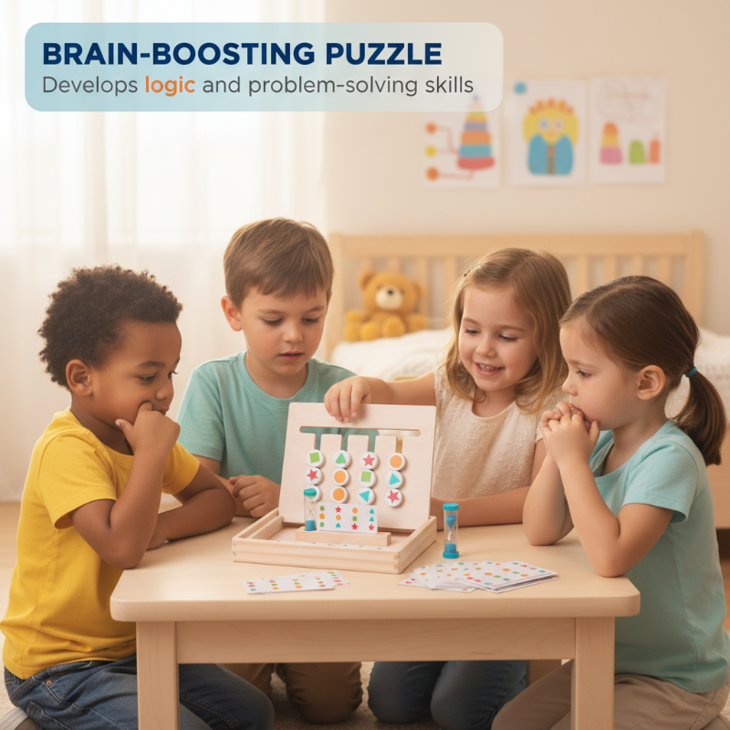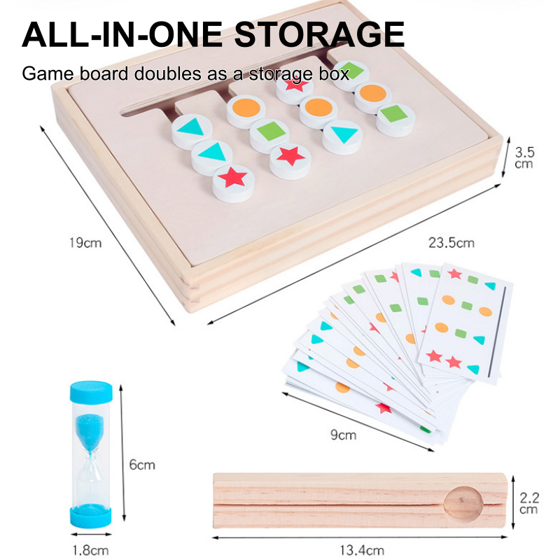 COGNITIVE SKILL DEVELOPMENT - Enhances color and shape recognition, problem-solving abilities, and logical thinking. Children slide the pieces to match the patterns on the cards, offering a fun, hands-on learning experience.