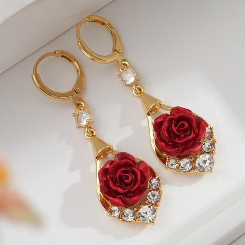 MOTIF ROSE ÉLÉGANT - Centrées autour d'une rose rouge magnifiquement travaillée, ces boucles d'oreilles symbolisent le romantisme et la passion. Les détails complexes ajoutent une touche d'élégance intemporelle, rendant toute tenue plus sophistiquée et significative.