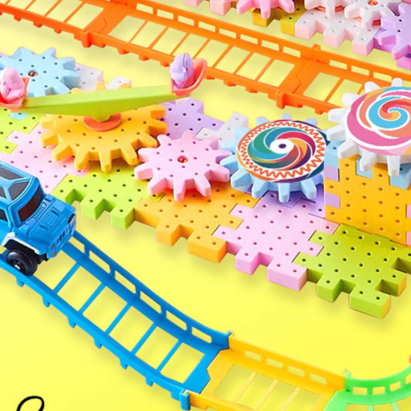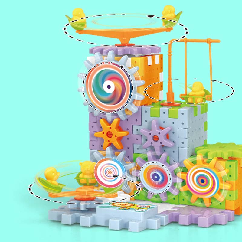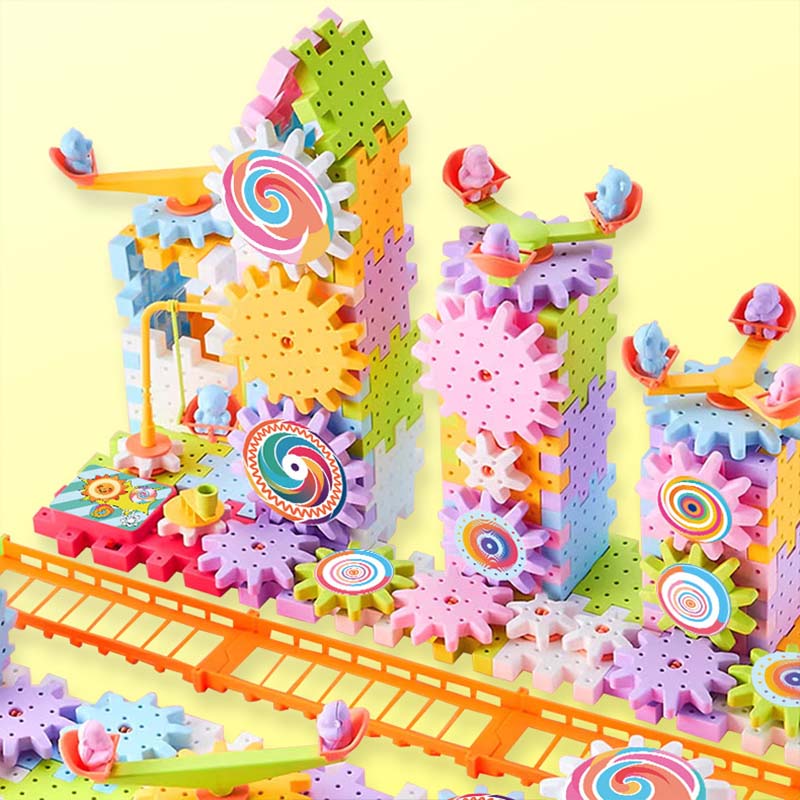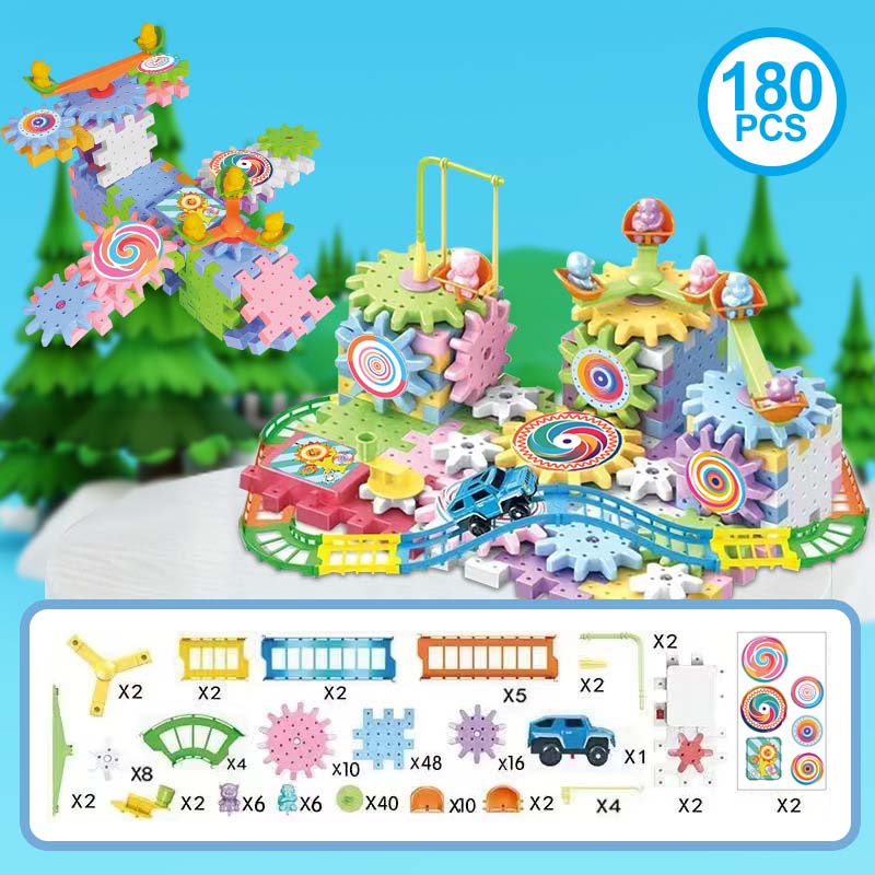 CRÉATIVITÉ SANS LIMITES - Allez au-delà du simple empilement. Ce kit dynamique permet aux enfants de construire des structures complexes et mobiles à l'aide d'engrenages et de rails, stimulant ainsi leur imagination pour créer tout ce qu'ils veulent, des carrousels aux parcs d'attractions entiers.