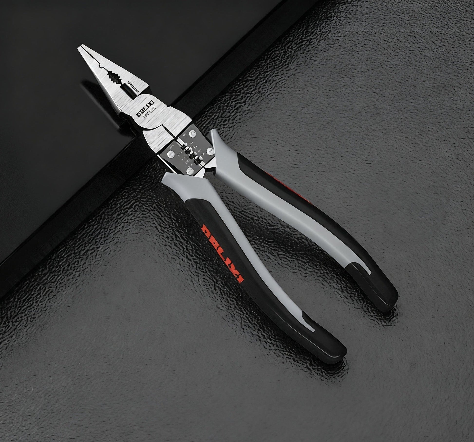 Pince Multifonctionnelle – Cet outil peut être utilisé comme pince à dénuder et également comme pince coupante. La partie pour dénuder peut être ajustée avec un tournevis. Elle peut couper des clous en acier de 3 pouces, des fils en acier de 4 mm², 6 mm² et 8 mm², et dénuder des fils de 1,0 mm², 1,5 mm², 2,5 mm², 4 mm² et 6 mm².