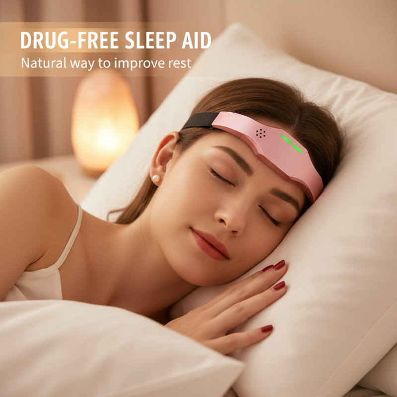 MASSAGE PAR IMPULSIONS AVANCà - Au lieu de simplement vibrer, cet appareil utilise de douces impulsions électroniques pour stimuler les points d'acupression clés de votre front, soulageant efficacement les tensions et apaisant votre esprit pour une nuit de sommeil paisible.