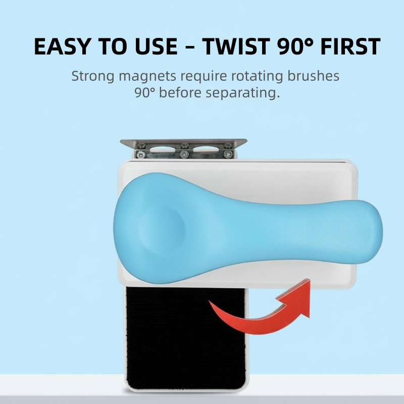 FORCE MAGNÉTIQUE PUISSANTE - Assure que les deux moitiés de nettoyage restent fermement connectées à travers la vitre, offrant une puissance de frottement forte et constante sans jamais avoir besoin de vous mouiller les mains pour un nettoyage en profondeur.