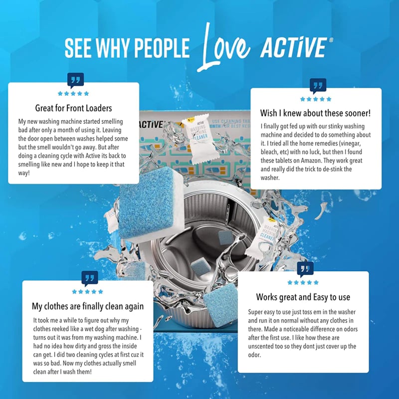 En utilisant nos tablettes de nettoyage en profondeur pour lave-linge une seule fois par semaine, vous pouvez maintenir sans effort un lave-linge propre et frais, en veillant à ce que votre linge ait toujours la meilleure apparence et la meilleure odeur possible. De plus, grâce à notre formule puissante, vous pouvez éliminer les taches et les salissures les plus tenaces, pour que votre lave-linge reste en parfait état pendant des années.