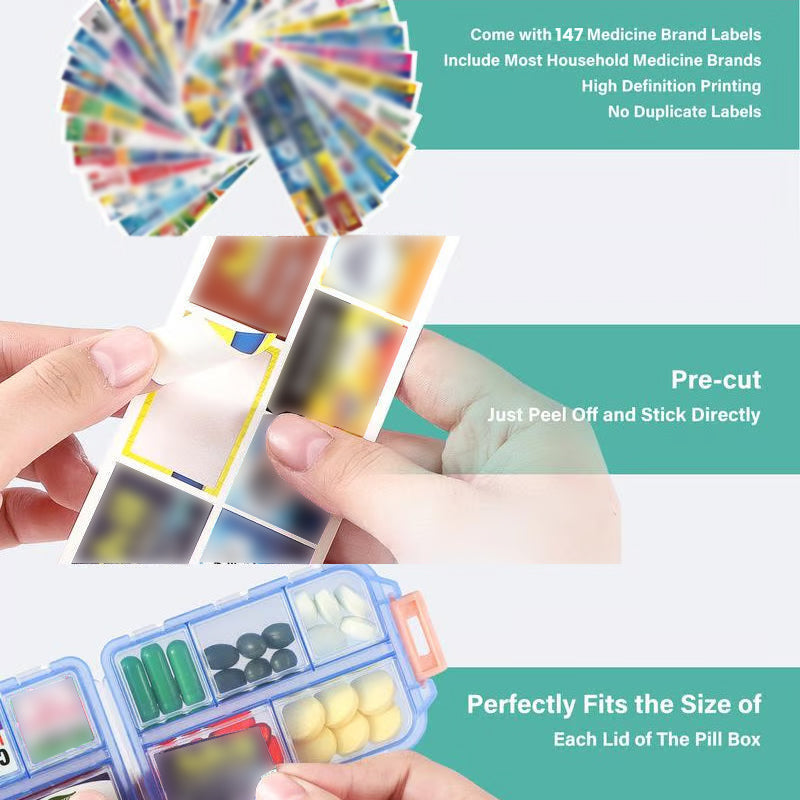 147 ÉTIQUETTES MÉDICALES COMPLÈTES – Comprend une large sélection de 147 étiquettes, vous permettant de personnaliser chaque compartiment avec le nom de vos médicaments, afin que vous puissiez facilement identifier et organiser vos comprimés.