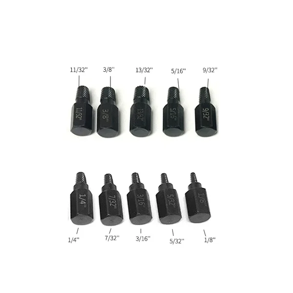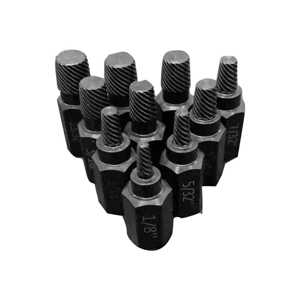 Notre jeu d'extracteurs facilite grandement le retrait des goujons, des boulons, des vis à tête cylindrique et des raccords cassés.
